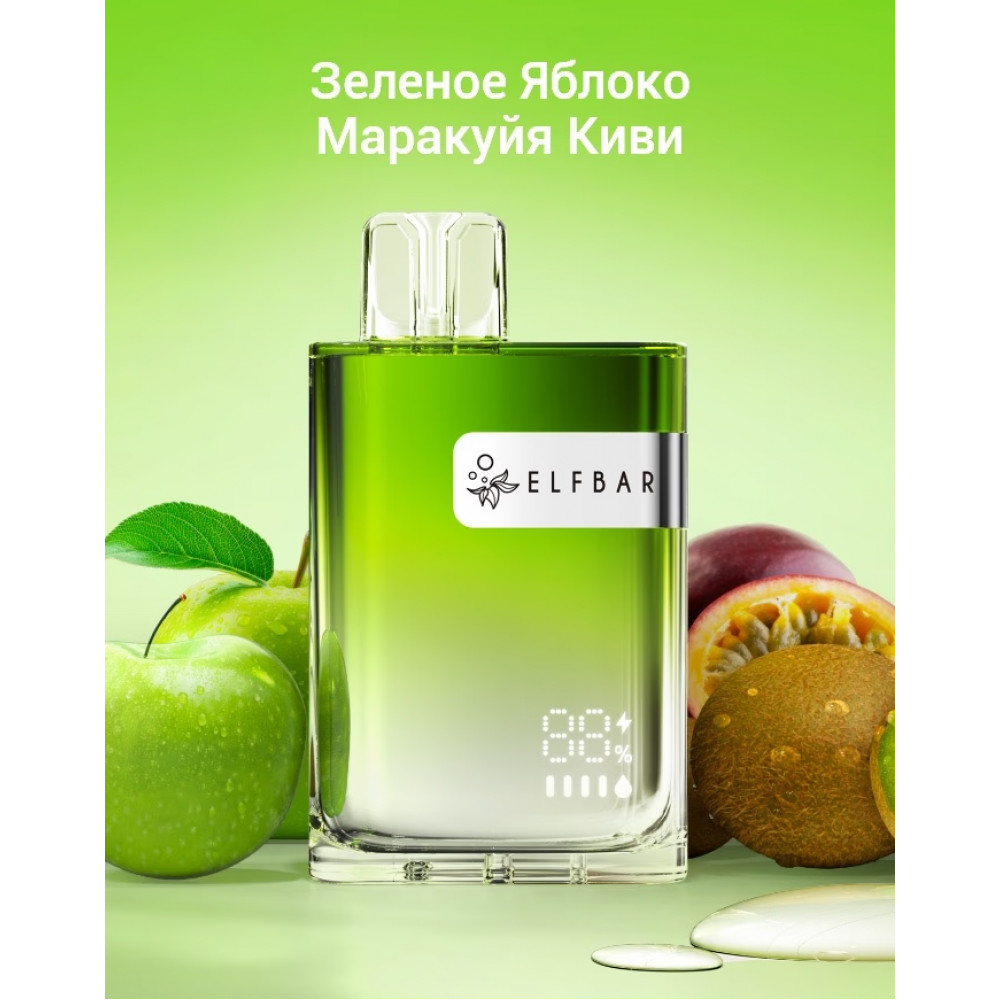 | Аромат/вкусЗеленое Яблоко Маракуйя Киви | БрендElf Bar | Вес, гр120 |