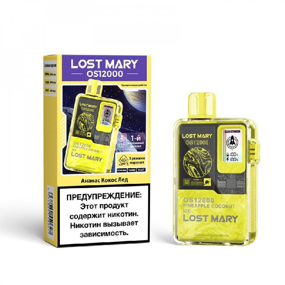 Электронная сигарета LOST MARY OS 12000 затяжек Pineapple Coconut Ice (Ананас Кокос Лед).
