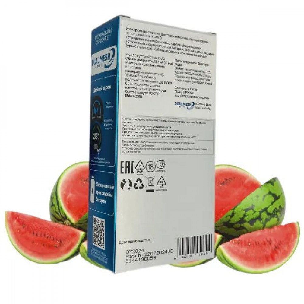 | Аромат/вкусАрбуз | БрендWAKA | ДисплейLed |